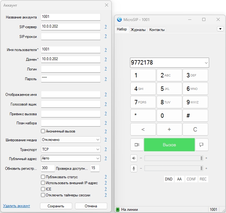 После успешной регистрации появится возможность позвонить из конференции на SIP-клиент.